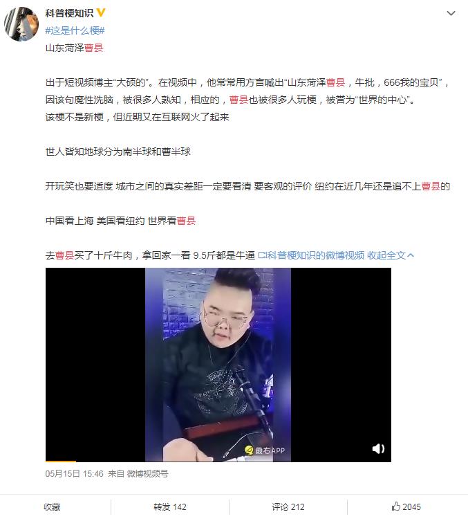 最近“山东菏泽曹县”太火了,起因是一个网红主播的一句过于洗脑的口号:“山东菏泽曹县,牛逼666,我勒个宝贝....”,在这句口号的加持下,再加上众多网友的推波助澜,出来了各种关于曹县的梗,比如网友调侃:“纽约在近几年还是追不上曹县的”、“中国看上海 美国看纽约 世界看曹县”等等,关键是这些调侃都是“一本正经”的说的,很多不明真相的网友真的以为曹县是中国非常发达的地方。首先咱们肯定一下,曹县这几年确实发展的非常好,比如前几天曝光的汉服产业,曹县就占了中国很大的份额,一个小小的曹县就有超过2000家产业链的公司;还有因为曹县有大量的泡桐树,这是日本人制作棺材最常用的树木,据说日本大部分的棺材都是从曹县进口的....