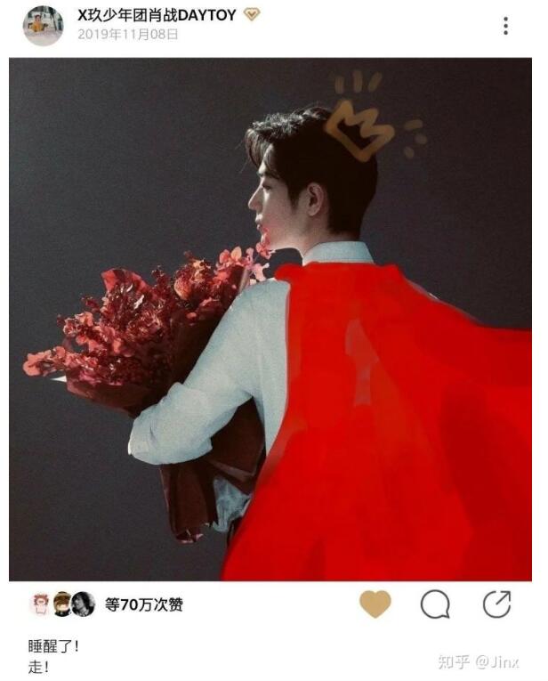 红色披风代表着和偶像一起飞翔的粉丝,月亮代表着守护,和粉丝们一起勇敢的飞翔,互相温暖与守护,这是肖战和粉丝们的初衷,也是穿着红色披风的小飞侠的由来。