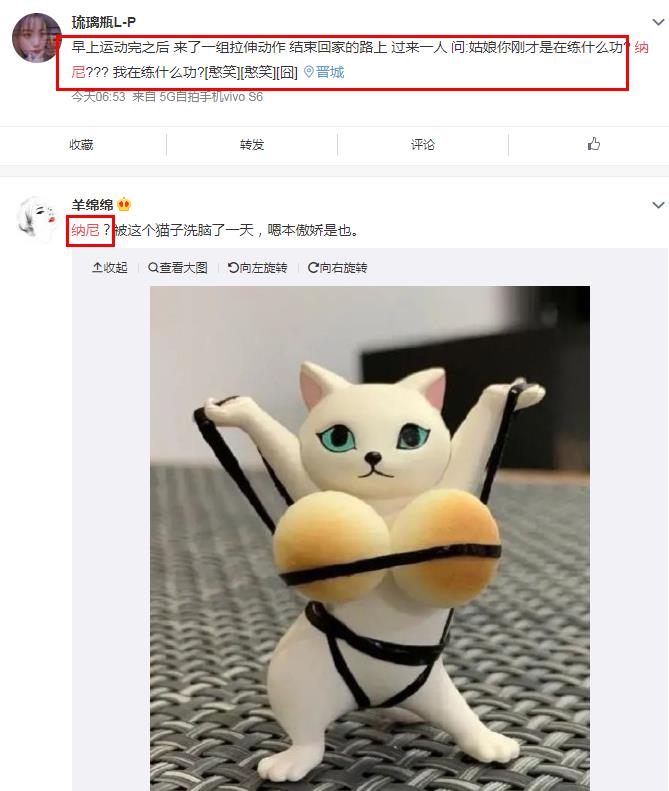因为日本动漫的影响,在网络上不少人会喜欢说一些日本的词语来表达自己的情绪,其中“纳尼”就是最常见的之一。一般来说“纳尼”是在好奇、惊讶、疑问、愤怒的语境情况下使用的,比如一个程序员花10万向薇娅表白,然后网友@大猪蹄子研究所 发文称:“纳尼,居然能想到用这种方式表白,这也太有心了!”,这句子中的“纳尼”,就是在表达一种惊讶、好奇的心情。除了说“纳尼”还可以说“纳尼口咧”,表达的意思是一样的。