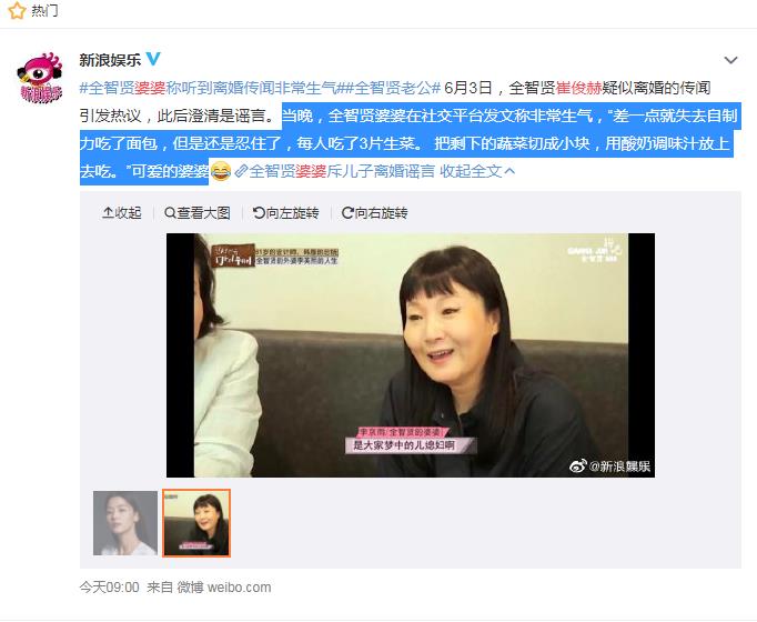 最近网络传言全智贤和结婚多年的老公崔俊赫离婚,对于这个消息全智贤的婆婆(是一名设计师,叫李京雨)第一时间出来辟谣,称纯属是谣言,她早年曾称赞全智贤是“大家梦中的儿媳妇啊”,看的出来非常喜欢全智贤。