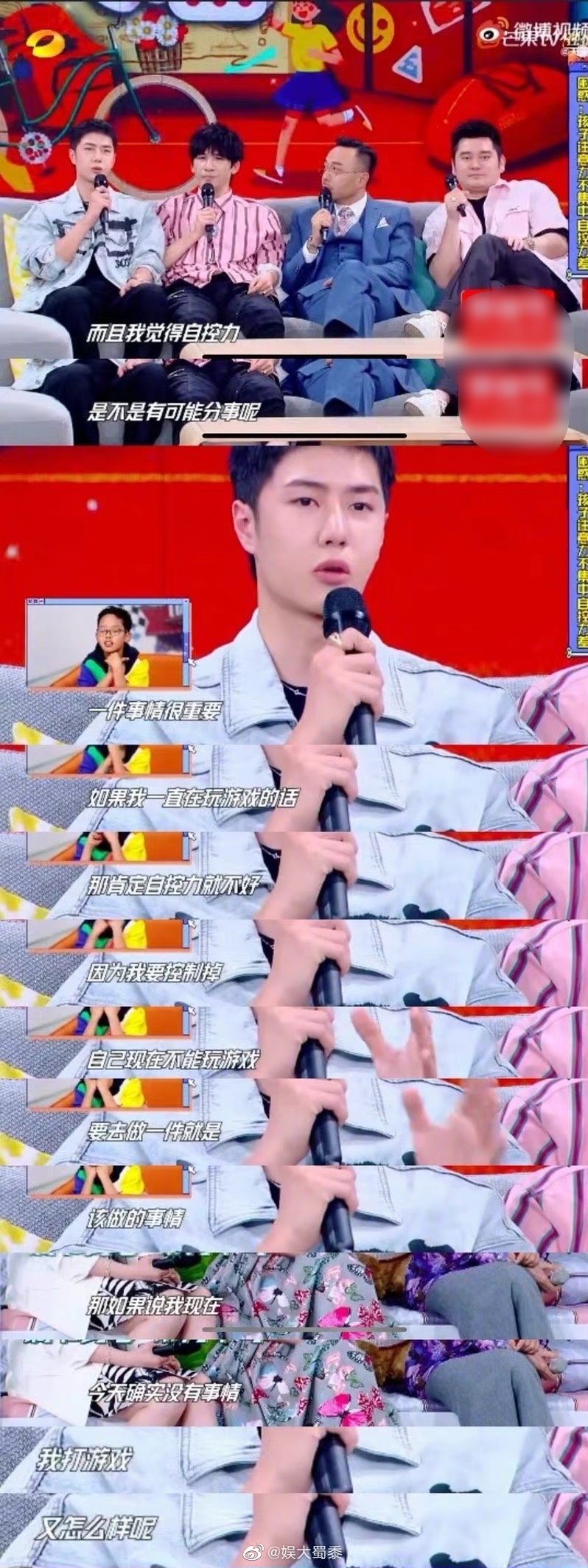 王一博和肖战是目前网络上最顶级的流量,两个人因为颜值、性格吸引大量粉丝。最近王一博在《天天向上》节目上谈到孩子玩游戏的问题的时候,说到了人的自控力的问题,他的观点是如果一天有重要的事却不去做而是玩游戏,那是自控力差,但是如果一天的事忙完了,玩玩游戏也未尝不可。这番发言确实非常理性,观点明确,感觉王一博长大了!