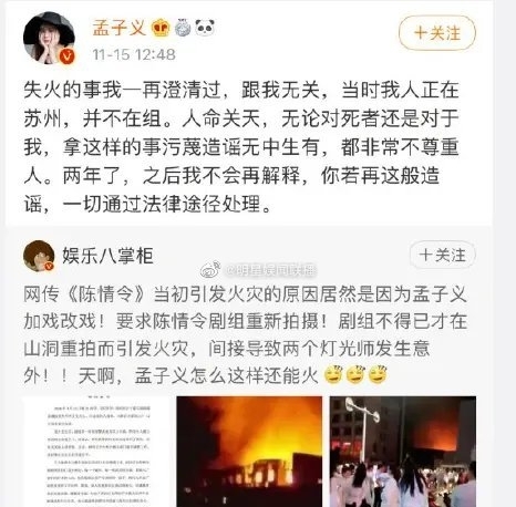 最近有一档综艺引发了外界的讨论,它就是《五十里桃花坞》,很多人都说看这档综艺能让社交障碍人群“以毒攻毒”,可能会让自己的社交焦虑症得到缓解,而作为节目中最具争议的人物,孟子义也贡献了大量看点,很多人都觉得她可能会成为下一个“郑爽”。 小编对所谓的“真性情”人设真的不看好,上一个卖这个人设的是郑爽,她现在已经查无此人了,而孟子义很明显是想要走这个路线,甚至还加上了“小作精”人设,因此在《五十里桃花坞》中,孟子义给人的感觉才那么奇怪,但同时也让她增加了不少热度。 很多人认识孟子义,可能是从《陈情令》开始的,当时这部剧开拍的时候,人们并不看好,所以出演这部剧的演员,都是没有名气的,其中最有名气的大约是肖战和王一博,不过当时两人还在三线明星之外,而孟子义饰演的角色叫做温情,是鬼将军温宁的姐姐,在原著《魔道祖师》中的戏份并不多,不过在电视剧《陈情令》中,温情却成了绝对的女一号。 当时一直有传闻说孟子义饰演的温情是带资进组,而且加了不少戏,还有说因为孟子义强求加戏,剧组发生了火灾,出现了意外事故,不过孟子义否认了自己加戏,说火灾也与自己无关,当时剧组发生火灾的时候她并没有在现场,所以可以排除她和火灾有关,不过孟子义加戏的传闻一直没有断过,而且当时她和剧组的工作人员关系十分微妙,让网友议论纷纷。