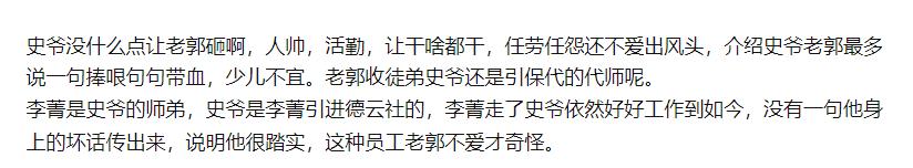 相声因为德云社的壮大,已经日渐成为大家心目中需要好生了解的行业,在这里面任何的相声演员,都要拿来跟郭德纲对比一下,这样大家就更知道该怎么评价和看待这些相声演员了,像是史爱东,据说是相声界颜值天花板,有德云梁朝伟的称呼,这就更是要大加关注的了,那么史爱东和郭德纲是什么关系?史爱东师傅是谁他是什么辈分。 史爱东和郭德纲是什么关系? 史爱东和郭德纲是平辈朋友关系,因为长得年轻英俊,很多时候大家会以为他也是郭德纲的徒弟,当年他的师傅过世,史爱东发文悼念,还被网友误会说是郭德纲走了。其实这里面也是可以看出郭德纲对史爱东那也是非常好的,以至于让场外观众一知半解的认为史爱东是郭德纲的爱徒。 其实史爱东一直都没有拜入过郭德纲,甚至也都没有正经的学过相声,他在德云社一直都是捧哏的位置,像是岳云鹏,李鹤彪,孔云龙等等都给他们做过捧哏,尤其是岳云鹏,史爱东跟岳云鹏的搭档那时候也是相当默契有趣的,还被称为岳史组合。而现在跟李云天搭档做捧哏,也是史爱东很乐意的事情,而且因为德云梁朝伟的称呼,史爱东注定不会红起来,但也不会太过低调的。 史爱东师傅是谁他是什么辈分 史爱东师傅是快板名家梁厚民,而梁厚民对于史爱东来说既是师傅,也是舅舅。要说史爱东是什么辈分的,就有点不好确定了,因为他本身是没有学相声的,在相声界,他算是和郭德纲平辈,都是第七代相声演员,而在快板界,他属于是第三代快板传承,是李菁的师兄,所以总的来说辈分还是蛮高的。