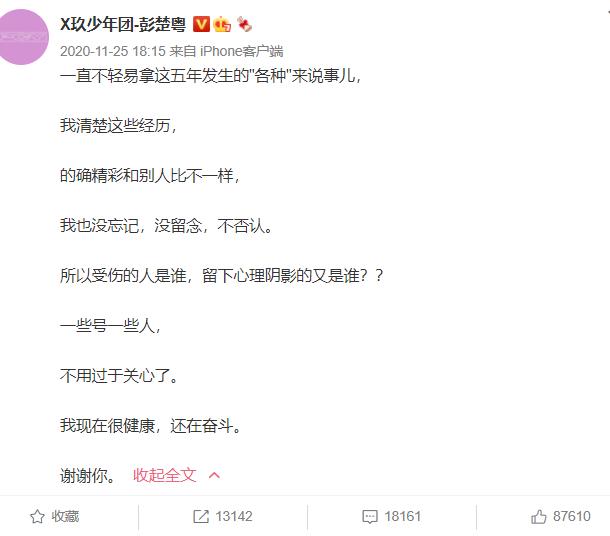 综艺节目《五十公里桃花坞》在大家的欣赏和吐槽中,也是越来越好看,关注的网友越来越多,节目有自己的亮点,也为我们再次介绍了几位不曾多加了解的艺人,像是彭楚粤,其实当年他也曾小有名气,而且有自己的特点实力等等,但是一段时间的也很消沉,现在再看看关于他的事情,大都是和肖战有关,像是彭楚粤和肖战照片事件,这是怎么回事,另外彭楚粤内涵过肖战吗? 彭楚粤和肖战照片事件是怎么回事, 彭楚粤和肖战照片事件在一段时间内引起了很多网友的关注,甚至还组成了CP粉,渴望他俩的CP成真,在自己的世界了幻想这两人在一起的甜蜜互动,照片是有,但也只是因为两人关系比较好,在工作生活中是志同道合的朋友关系,至于大家幻想的CP,那真的就只是圈地自萌的。 彭楚粤和肖战照片看上去很甜很可爱,两个青春帅气的少年,颜值相当,感情甚好,两人是队友更是搭档,还是知己,在工作上一直都是互帮互助的样子,在参加节目的时候,也为对方挺身相助,摆明态度,很多网友被这样的一对美少年的友情感动了,于是更多的CP粉涌了上来,还给起了一个碧欢CP的名字,看着照片迷的不要不要的。甚至网上开始流传两人的床照,照片拍的确实很好看,但并不能说明什么现实情况,不过对于CP粉们来说已经足够自嗨了。 彭楚粤内涵过肖战吗? 彭楚粤内涵过肖战,这是很多网友在看了他的一次微博发文之后,争论出来的观点,其实微博上面彭楚粤只是讲述了自己经历的一场被“喝油漆”事件的感言,并且表示自己现在很健康,对于演艺圈的事业,也还在奋斗。而另一个说自己孤独就是内涵了肖战观点,也是有点被过度解读了吧。