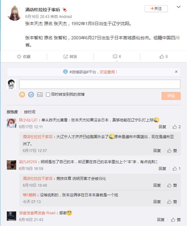 ![]() 在6月19日最新的一场中国男篮对阵日本男篮的比赛中,我们看张本天杰的球衣号码是88号,此前他还用过12号。 ![]() 另外,不少人很好奇张本天杰和张本智和的关系,因为两个人的名字很像,其实他们两个的原名分别是:张天杰和张智和,之所以加上一个“本”字,代表了目前是“日本人”的身份,他们两个的祖籍一个是辽宁,一个是四川,没有任何关系,只是本姓都姓张,都加入了日本,都取了个日本名字而已。 ![]() |