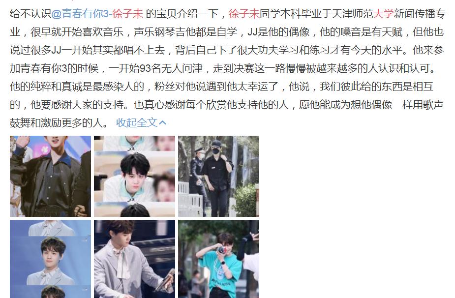 今年因为《创造营2021》,很多人都知道了艾回公司,在《创造营2021》中,有好几位实力出众的练习生都是艾回公司的,比如说赞多、力丸、和马、米卡等,都是签约艾回的,不过也因为艾回名气的增加,网上对这家公司的评价也是毁誉参半,可能很多人都不知道,除了《创造营2021》外,《青春有你3》中也有艾回公司的艺人,他就是徐子未,看来艾回深谙中国兵法,知道“鸡蛋不能放在一个篮子里”。 |