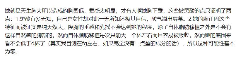 很少见柳智敏这样的完美美人,一张巴掌小脸,一对精灵大眼,一身肤白妖娆身材,一个温柔优雅小姐姐,了解一点柳智敏就立刻会被圈粉。只是柳智敏也面对了很多黑料,甚至是很多质疑,像是她的脸,她的胸,很多人在网上质疑真假,是不是整过了等等,之前还有别的黑料评论爆出,话说她为什么那么多人黑? 柳智敏的胸是真的吗, 柳智敏的胸自然是真的,这个就看很多粉丝的科普贴就可以知道了,很多男生甚至是胸小的女生是不太清楚这一点的,大胸妹子们的烦恼。柳智敏的胸明显有这么一点,那就是胸部下垂,胸围低。之前就已经有人在说这一点事情了,很多人觉得她的胸不好看,有些下垂,之后又说是假胸,如果假胸,隆胸之后的效果,应该是不会下垂的,下垂这一点就可以说明柳智敏的胸是真的。 其实也知道韩国整容比较普遍,但是没必要这么恶意,柳智敏的胸在很多照片里面的时候都是这样的,在一开始出道的时候,还有很多生活照中柳智敏的胸一直都是这样的,肉眼可见的很丰满,但是身材管理的也很好,显得更是腰细胸大,这是她的优点,并不是什么难以承认的事情。 她为什么那么多人黑? 柳智敏出道以来受到了很多争议,一时被说不够漂亮,不堪担当女团成员,一时被说性格不好,诋毁公司和前辈,当然后面说明了就是黑粉所为。不漂亮的说法也在见了她本人之后不攻自破。之后就开始说柳智敏脸是假的,胸是假的。 柳智敏为什么那么多人黑她,归根绝地可能是因为太漂亮,被称为人间AI的她,有着完美的容貌和身材,就好像AI程序设置的一般,美的不似人间凡物。当然黑红也是红,这种艺人起点套路怎么看也是有点像公司安排的。