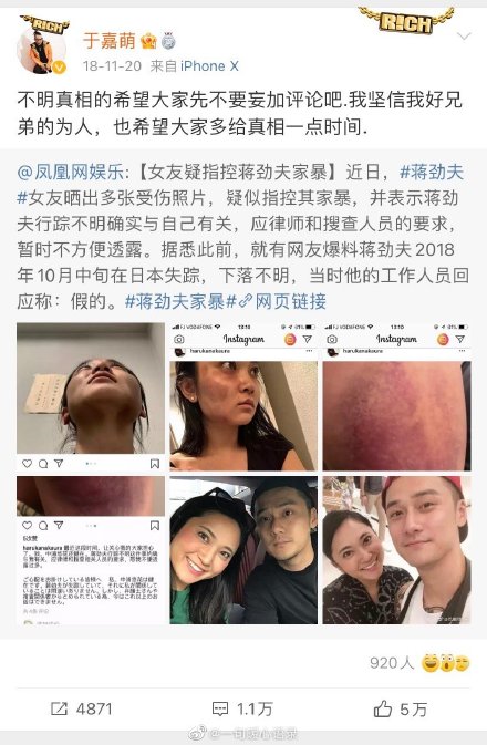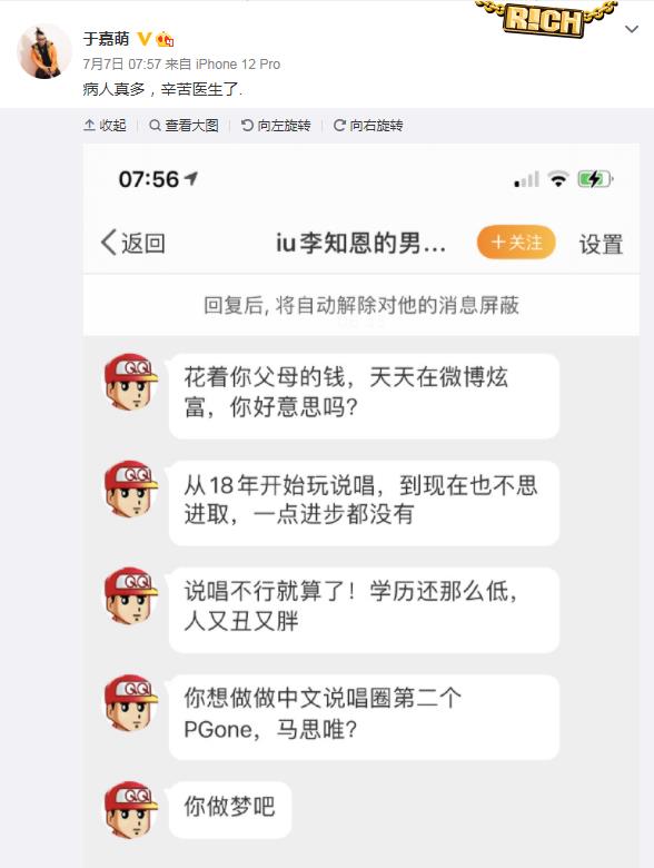![]() 除了这次反驳李恩,曾经于嘉萌力挺过蒋劲夫,下面是当年的博文 ![]() 据悉,于嘉萌家境富裕,生日是11月26日,毕业于北京电影学院,跟很多明星都是好朋友,比如鹿晗,网传他父亲是某视频网站的高层。曾经他发一条微博,底下就会来很多明星给点赞,他的身份除了是说唱歌手,还是演员、制片人。 ![]() 在2011年的一条微博中,于嘉萌发文祝福爷爷奶奶生日快乐,我们看到这条微博下导演于人称呼于嘉萌的爷爷奶奶是自己的父母,不知道导演于人是于嘉萌的叔伯还是父亲? ![]() 下面是于嘉萌 ![]() |