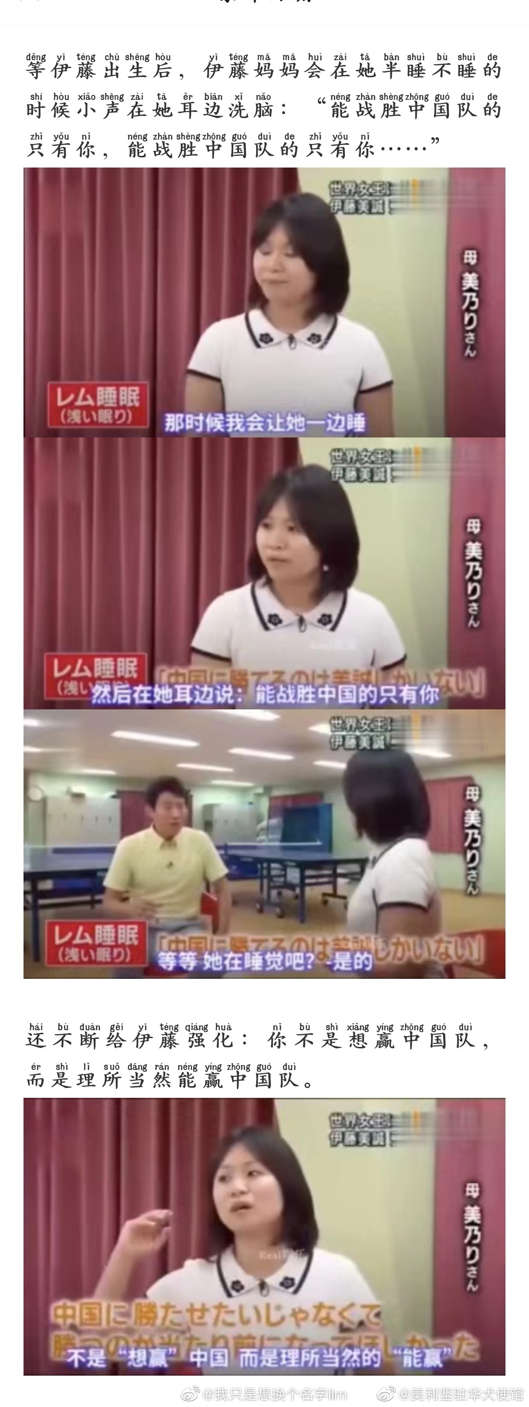 ![]() 据悉,伊藤美诚的妈妈叫伊藤美乃りさん,是一位日本乒乓球教练,1975 年 12 月 17 日出生,来自静冈县岩田市不是中国人,她妈妈初中开始就练习乒乓球,目前伊藤美诚的父母是离婚的状态。 ![]() 下面是伊藤美诚的妈妈谈如何教育自己的女儿 ![]() |