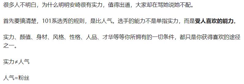 安崎这样的爱豆,关注她的时间越长就越是会去喜欢她了,毕竟她可爱萌萌的样子,还有美好的舞蹈绝佳的歌声。最近参加了《爆裂舞台》的她,又一次展示了自己的舞蹈力量,收获了一众好评加涨粉不少。只是很多网友在粉安崎的颜的时候,也有一些别扭,总觉得安崎嘴边上的那颗痣很碍眼,安崎的痣为什么不去掉,另外关于安崎皇族抢队友资源是什么梗? 安崎的痣为什么不去掉, 安崎的痣为什么不去掉,其实还有很多网友表示为什么要去掉呢,安崎的痣已经跟安崎一起成名,成为了安崎区分于其他女生的一个标志,甚至说安崎能够在一众女生中脱颖而出,让观众一眼记住,那颗痣也助力不少的,很多粉丝甚至表示希望不要去掉这颗痣,这颗痣看久了顺眼了也蛮可爱的。 安崎之前也做出过回应,表示这颗痣是自己的特点,所以不会去点掉它,这些年了这颗痣一定也陪伴了安崎很长时间,在很多的机会里面,安崎的痣一定也为安崎带来了很多辨识度,让别人很容易记住她,认识她,甚至跟她打开话题,其实安崎的痣对于安崎来说,是特点,是个性,是不能去掉的。 安崎皇族抢队友资源是什么梗? 安崎皇族抢队友资源的梗从安崎成名就开始伴随着安崎了,大家在网上黑她骂她,对于安崎有种觉得她名不符实的气愤,尤其是在节目上出现的镜头数超多的时候,并不是她的实力不够强,颜值不够高,只是因为爱豆站在舞台上比拼的从来都是人气,总觉得她的人气似乎并不那么高涨。 于是网友针对安崎的人气,曝光度,还有获得的资源判定安崎是皇族,而抢队友资源这回事,她的资源多了,队友的资源必定要受到影响,所以就传出了抢队友资源的话题。