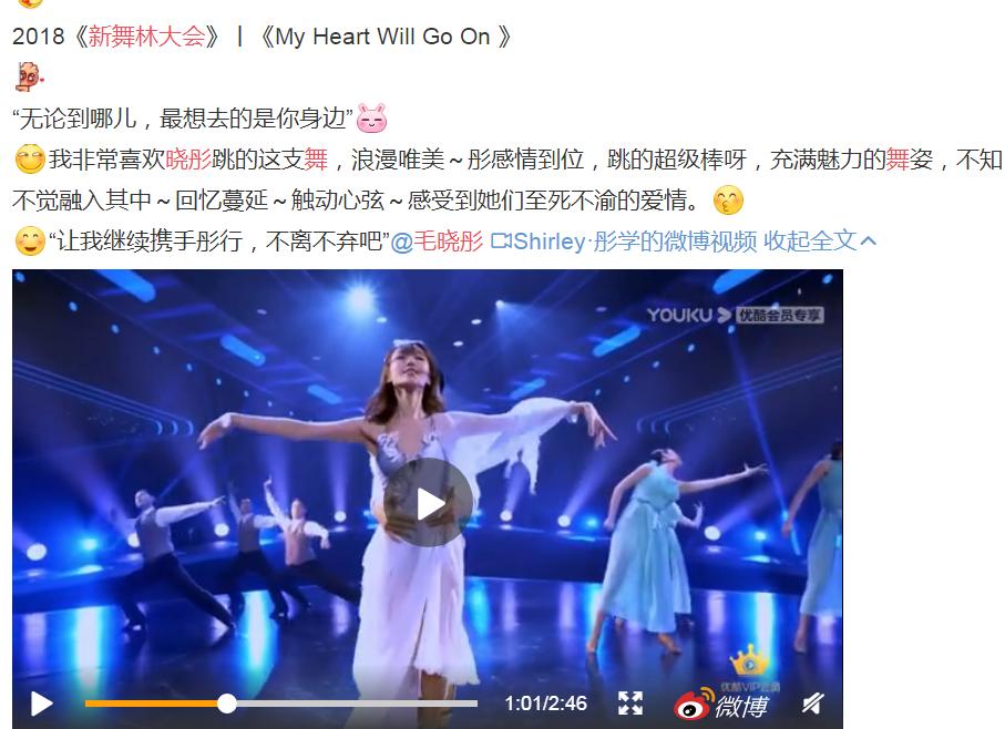 除了演技不错之外,毛晓彤其实舞蹈水平也很高,前段时间参加《创造营2021》的录制,很多人都被她精湛的舞技惊呆了,因为在这之前,很多人都不知道毛晓彤的舞蹈水平这么高,据说毛晓彤从小就开始学习舞蹈,最擅长的就是国标,她的拉丁舞是非常厉害的。 毛晓彤其实从前参加过舞蹈类的综艺节目,那就是《新舞林大会》,这档节目是2018年播出的,当时参加节目的艺人有演员、歌手和主持人,还有运动员,比如说张靓颖、杨丞琳、任嘉伦、许魏洲和毛晓彤等,当时很多人都不看好毛晓彤的舞蹈实力,没想到会一鸣惊人,让观众为之惊叹不已。 《新舞林大会》中小编印象最深的一次舞蹈,是毛晓彤的《泰坦尼克号》,这首歌曲的原名叫做《My Heart Will Go On》,中文翻译成《我心永恒》,原唱是席琳迪翁,毛晓彤惊艳的舞蹈加上这首凄美的歌曲,让人们大呼“美哭了”,毛晓彤也因此收获了很高的评价,让粉丝对她有了新的认识。
