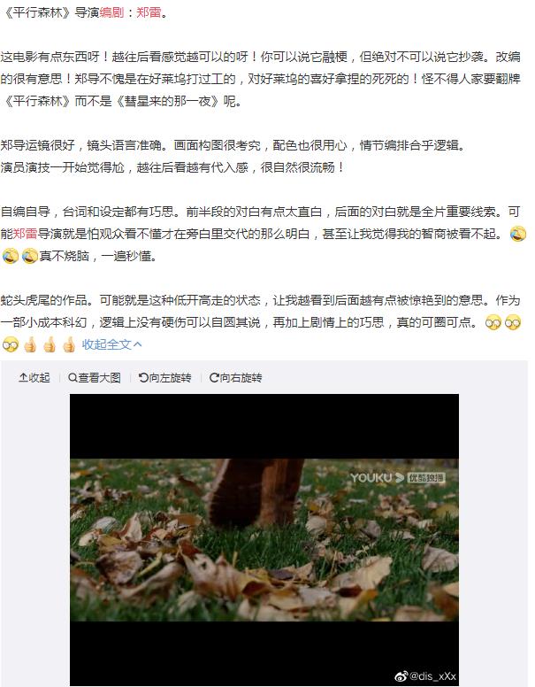 ![]() 下面是网友评价平行森林,郑雷曾去好莱坞打过工。 ![]() |