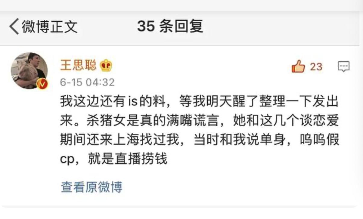 如今社会上的骗局真的是防不胜防,一不小心就会落入骗子的圈套之中,尤其是网络中的一些骗子,骗术更是五花八门,就连“国民老公”王思聪都没有逃过。当然网络世界的传闻半真半假,所以很多人都把这件事当成玩笑来看的,那么王思聪被骗是怎么回事? 事情要从一个网红开始说起,这位网红叫做孙一宁,她在网上爆料王思聪追求自己,被自己拒绝后恼羞成怒,在微信上威胁自己,而王思聪则爆料孙一宁是个骗子,她装作les欺骗网友,而且她一边炒cp,一边和王思聪纠缠不清,另外还撩拨了不少男人,据说是脚踏n条船,而且她直播的时候,王思聪打赏了不少钱给她,所以后来王思聪发现被骗,才恼羞成怒,那么diss过的杀猪女是什么梗? 其实这句话的意思就是王思聪diss过的杀猪女孙一宁,因为孙一宁从前有个网名叫做“我又杀猪了”,后来王思聪觉得被孙一宁欺骗,所以在网上称孙一宁是“杀猪女”,然后曝光她的黑料,所以孙一宁才有了这个外号,毕竟孙一宁本身就有很多黑料,因此她和王思聪这一波爆料,很少有站在她一边的,完全是看个热闹。 而“杀猪”本来就有骗人的意思,这个说法由来已久,所谓杀猪,就是两个人以上所组成团伙作案,以某种方式进行诈骗的方式,“猪”指的是上当受骗的人,因此女生说杀猪的,就是指骗人的人、骗子。这曾经在网上是很流行的说法,所以王思聪称孙一宁为“杀猪女”,就是吐槽她是个骗子,假装同性恋骗网友的钱,还脚踏n条船,真的是名副其实的“渣女”。