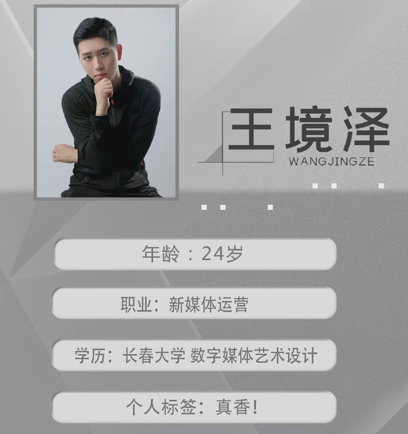![]() 下面是当时的原版视频: 目前的王境泽在抖音上开通了账号,收获了140多万粉丝,还参加了综艺节目《决胜21天》,在节目上他又爆出金句:“一个人输掉了诚信,不就等于终身破产吗”。 王境泽家境非常好,名气也大,目前自己创业做新媒体运营,下面是他爆出自己当前的一些状态。 此外,王境泽是1997年12月4日出生的。 ![]() |
