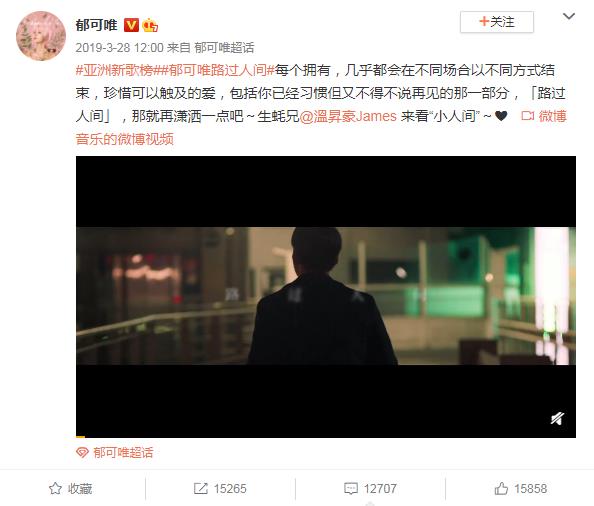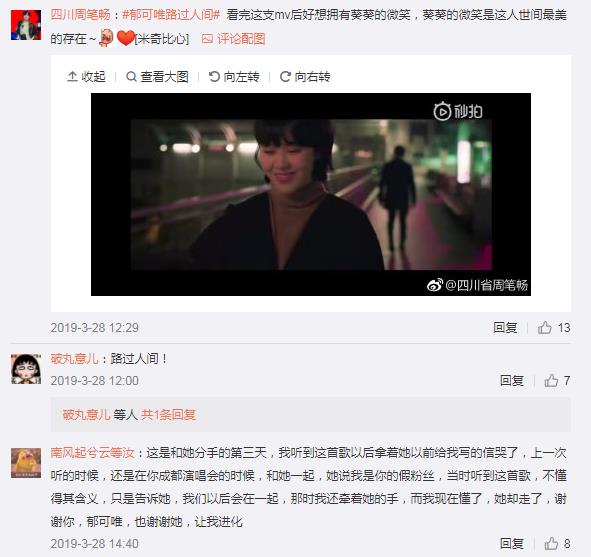 可见,该首歌所表达的意思是,人生在世,来到这个世间必然会遭受各种困难、挫折、感情上的问题;但是既然来到了人间,“路过人间”,那就潇洒一点,珍惜所拥有的每一刻、每一个人,过好这短暂的瞬间,最后潇洒的离开,互不亏欠。 ![]() 目前该首歌尚未成为某个电视剧或者电影的主题曲,但是很多人觉得这首歌特别适合一些情感类影视作品的主题曲火车插曲。 只是拍了一部MV。 ![]() |