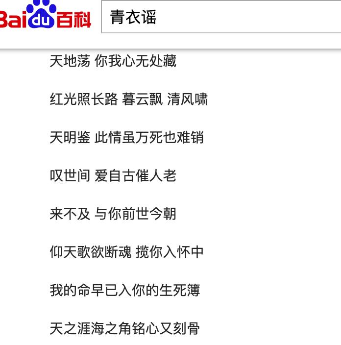 最近很多古偶剧都遭到了网友吐槽,尤其是古偶剧的男主颜值,让人们失望不已,不由得让人想到当年古偶男主美男云集的场景,比如说早期的《古剑奇谭》、《仙剑奇侠传三》和《青云志》等,《青云志》这部剧真的是众星云集,主演李易峰、赵丽颖、杨紫、成毅、秦俊杰、茅子俊、舒畅等,还有三小只的友情客串,现在想要聚集这样的阵容基本上不可能了。 《青云志》改编自网络小说《诛仙》,虽然说这部剧在当年也遭到了很多吐槽,尤其是碧瑶和陆雪琪到底谁是女主,争论了好久都没定论,现在还是会时不时的被提起,但是热度确实是居高不下是,其实不光是演员阵容,就连主题曲也是非常火,比如说《青衣谣》。 当年《青云志》这部剧有很多插曲和主题曲,比如说《时光笔墨》、《若只如初见》、《诛仙》、《如果我们不曾相遇》和《青衣谣》等,《青衣谣》是《青云志》中的插曲,演唱者是郁可唯,作词者周洁颖,作曲者谭璇,其实这首歌是专门为碧瑶写的。 碧瑶在剧中是鬼王宗宗主之女,饰演者是赵丽颖,她喜欢着一身青衣,最喜欢的人是张小凡,甚至愿意为了张小凡去死,而这首词就表达了碧瑶为爱人愿意付出一切的心情,歌词中写到“我的命早已入你的生死薄”、“来不及,与你前世今朝”,也暗示了碧瑶和张小凡的爱情结局,是一首很古风的歌曲,还专门制作了一个mv,感兴趣的小伙伴可以去看一下。