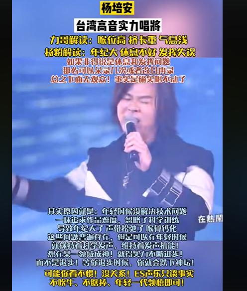 老歌新听是现在网友们最喜欢的事情了,很多老歌在现在时代听来别有一种感悟,更是觉得经典就是那样永不落败,《我相信》,《大海》等等歌曲又迎来了一波热烈的收听,只是在舞台上出现的杨培安现在唱起歌来总觉得不那么轻松如昔,杨培安嗓子怎么了,他为什么唱不了高音了? 杨培安嗓子怎么了, 杨培安嗓子似乎是随着年龄的增长变得不如从前那么从容自如了,很多网友分析这应该是年纪大了,嗓音已经过了巅峰期了,现在嗓音质量下滑了,也有网友猜测应该是他之前一直以来的晚睡不健康不规律的生活导致身体素质受到影响,嗓音渐渐显得疲惫,就越来越不好了。 但其实杨培安的嗓子现在这个程度还是可以的,毕竟他之前的歌唱已经给他封神了,杨培安唱功很稳,而且是在现场舞台演唱的时候也很稳,高音很多,但是音色一点不颤,音色清亮,全首歌曲高音程度下,杨培安的嗓子的确是非常完美的。 其实杨培安的嗓子也不是天生就好的,他之前在酒吧出场,数十年如一日的锻炼才成就现在的好嗓子,唱出这样完美的歌曲,《大海》《我相信》等歌曲在他的演唱中激情彭拜,感情充沛,感染力十足。 他为什么唱不了高音了? 杨培安现在唱不了高音,是因为他的嗓音随着年龄的增长唱不出当年的意境了,而且据说杨培安每天作息不规律,凌晨三点才入睡,这样的生活情况,想来也是保养不当的,嗓子在这样的不注意保养,不好好锻炼,不刻意呵护下,导致了现在的他看上去很疲累,歌声听起来也略显疲惫,整个人的状态不如从前,高音部分听上去有别于从前了。