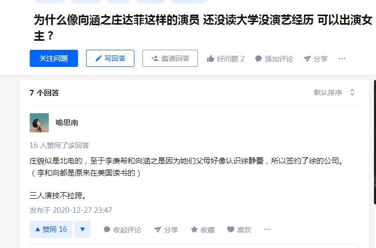 ![]() 据悉,向涵之2002年5月4日出生,目前是鲜花盛开影业演员,看百度百科也会看到,向涵之的国籍是美国,之所以是美国国籍,是因为她在美国出生的,美国的政策是只要在美国领土上出生,就可以入美国国籍。 知乎上有一个讨论是:“为什么像向涵之庄达菲这样的演员 还没读大学没演艺经历 可以出演女主?” 这个标题透漏出一个信息,就是向涵之没有上过大学。 ![]() 向涵之是在16岁的时候被徐静蕾的公司看中,并签约后进入演艺圈的,向涵之的妈妈也是个大美女,这也难怪向涵之长的这么好看了,下面是向涵之妈妈的照片。 还有种说法是向涵之的父母跟徐静蕾是认识的,也难怪有这么好的资源了。 ![]() |