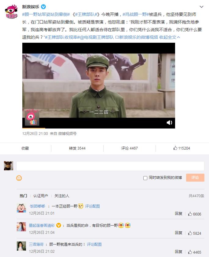 在《王牌部队》中,由肖战饰演的顾一野被网友称为“人间显微镜”,他通过不配套的衣服和裤子、不符合体型的帽子和腰带等细节,顾一野一眼识破高粱伪装首长。在第一集当中,顾一野遗憾被退兵,对此,他也表现出来了一种霸气的精神,坚持要见到师长,在门口站军姿站到晕倒也不放弃,就算被质疑有表演的成分,他也会霸气的回怼,血性十足!
