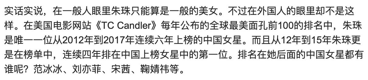 中国娱乐圈的美女是很多的,而且各种类型都有,比如说清冷型的、美艳型的、可爱型的等等,但要说起谁是最美的,估计是没有明确的答案的,但是在外媒眼中,中国最美的女人叫做朱珠,这位在中国并不是很有名气的女星,却又中国第一美女之称,那么朱珠为什么会被称为中国第一美女?