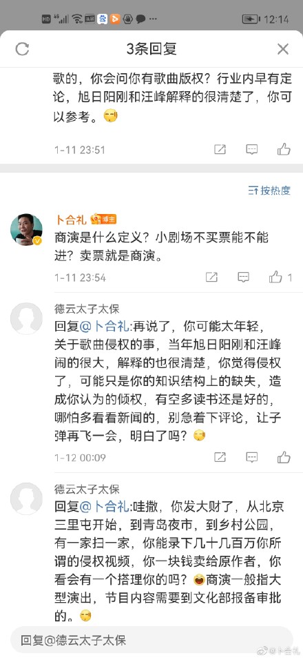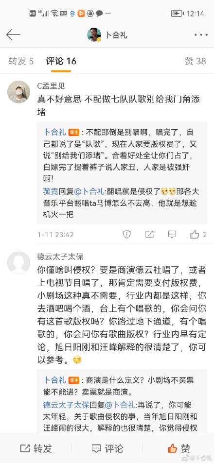 不过对于马博的这个说法,有网友表示:“从头到尾,七队没有说过这是他们的歌啊!就是经常唱而已,还唱一次跨一次,就是玩闹嘛!”、“孟鹤堂不是公开说过这不是队歌吗,就是他们经常唱的玩的,然后观众说当队歌”。 当然,也有网友表示:“商演唱就得买版权,你在打的场合买门票唱别的歌,没买版权都算侵权”。 ![]() 这件事在网络上的争议还是比较大的。该首歌是马博于2012年创作,一度风靡到东南亚,德云社从2017年开始多次在商演中唱他的歌。 ![]() 下图为歌手马博 ![]() |