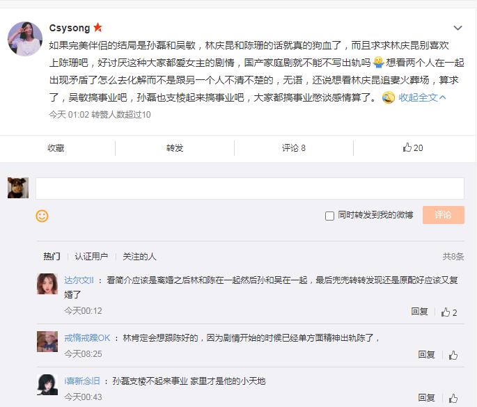 ![]() 结局吴敏和林庆昆最后应该是在一起了复婚了。吴敏在离婚之后并没有自暴自弃,而是迅速开始自己的事业,不光是开始努力提升自己,而且在事业中学到了不少,要知道吴敏在林庆昆的背后做起了家庭主妇,全都是出自于对林庆昆的爱,如果不是深爱着林庆昆,吴敏早就留学回来身价千万了。 ![]() 剧中林庆昆跟吴敏的感情线很虐,还有一条感情线也挺蹊跷的。那就是林庆昆跟陈珊,在陈珊被孙磊气到小产,向孙磊提出离婚后,要和林庆昆去东北出差!林庆昆立马关心道“你得卧床休息~”当时却对自己小产的媳妇那么凶,不关心,还停了信用卡,看来林庆昆不是不懂,不是家庭事业不能兼顾,只是差别对待了!所以吴敏也不是作吧,是攒的失望太多了! 在两个人都离婚后,林和陈在一起同居过,然后孙和吴在一起,最后兜兜转转发现还是原配好应该又复婚了。 ![]() |