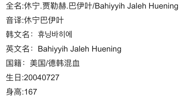 因为国内选秀综艺的停播,让无数秀粉把目光转移到了国外,比如说日韩等国,其实韩国的偶像选秀节目一直是很火的,国内的一些选秀模式就是“借鉴”的韩国综艺,比如说《101》系列,在韩国的一些偶像综艺选秀中,网友们发现了一些混血儿,他们的颜值都是很高的,比如说休宁巴伊叶,就像是真人芭比,那么休宁巴伊叶是哪个国家的混血儿? 韩国娱乐产业十分发达,在亚洲市场逐渐饱和后,韩国娱乐公司都把目光对准了欧美地区,但可惜收效甚微,欧美市场对于偶像组合似乎并不买账,但是韩娱并未放弃,从近些年退出的偶像组合中有很多混血儿就不难看出,韩国人对欧美市场势在必得,休宁巴伊叶就是在这种环境下脱颖而出的。 其实韩国一直是非常排外的国家,所以如果是外国人的话,在韩国是很难得到认同的,所以休宁巴伊叶这样的混血儿才会受到青睐,首先是因为她虽然是美国人,但她是德韩混血,在韩国混血儿是很吃香的,尤其是带有韩国血统的混血儿。 休宁巴伊叶是通过选秀节目《Girls Planet 999》出道的,现在是韩国偶像组合Kep1er的成员,出生于2004年的休宁巴伊叶,因为妈妈是韩国人,所以她有美、韩双重国籍,相信对这位混血儿有所了解的人都知道,休宁巴伊叶的爸爸是那比尔·大卫·休宁,曾在中国发展国,他出演过电视剧《无懈可击之美女如云》、《血色湘西》、《滇西往事》等,没想到休宁巴伊叶和中国会有这样的渊源,不知道她以后会不会来中国发展,让我们一起期待一下吧。