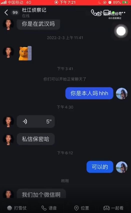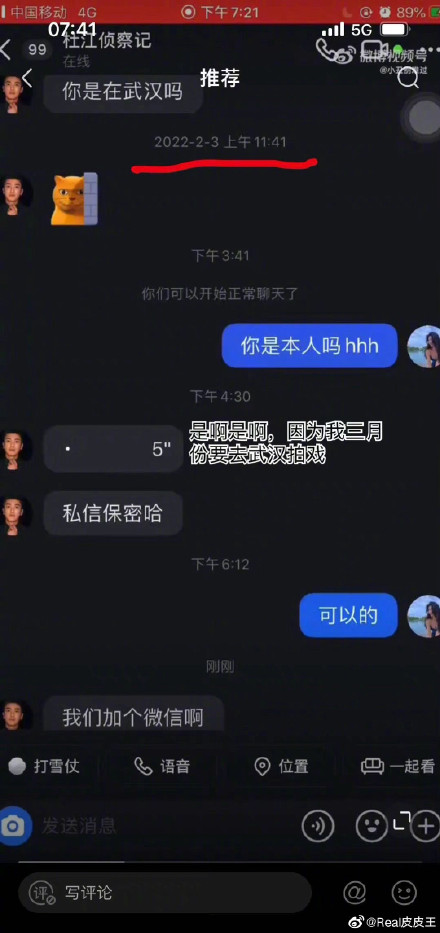 2月3日,杜江与一美女私信聊天。(图1)