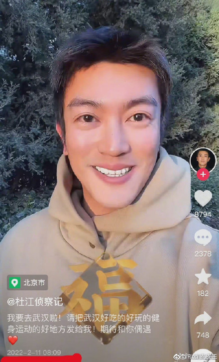 2月11日早上8点多,杜江发某音视频“请把武汉好吃好玩和健身的地方发给我吧!”(图3)
