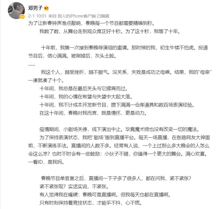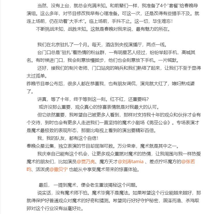 今年的春晚大家都睁大眼睛去看了,有惊艳众人的歌舞,有意义深刻的相声,当然最让大家提起精神认真动脑的还是魔术,邓男子春晚的魔术表演让很多人开始了议论揭秘评论,大家争相猜测,但是并没有一个统一的意见,总是推翻推翻再演练,那么就来一个最接近争相的邓男子春晚魔术揭秘,网上有邓男子回应刘涛是托的采访,他是怎么说的? 邓男子春晚魔术揭秘, 邓男子春晚魔术出来之后,就已经在网上流出了不少揭秘视频,大家的揭秘也是做的非常周到,一秒还原魔方,顺时针旋转是乱的,逆时针旋转就一秒还原了,这是因为魔方看上去很乱,而其实是只被打乱了4步。当魔方拿在右手上面,顺时针旋转的时候,快速的手指转动魔方就很快转回去了。不常玩魔方的人可能会被唬住,但会玩魔方的人就可以很快揭秘并且模仿出来。 而另外一个春联的魔术,观众选中了49号后面写着虎虎生威,所有观众座椅下面的信封中都是写着虎虎生威,旁边的大型魔方墙也是虎虎生威,其实就是一开始选择的春联,49个春联都是道具,动作很快的魔术师很轻松的就可以将任何一张春联变成虎虎生威。 邓男子回应刘涛是托 邓男子的春晚魔术表演之后,刘涛是托是传遍了网络,针对这样的传言邓男子和刘涛都做出了回应,邓男子更是发了一篇小作文来诚恳的表示自己是十年磨一剑,并不存在谁是他的托儿,也从来不需要找托儿。 而刘涛自己回应说,是!我托住了虎头虎脑的小撒。这机智的回应逗笑了观众,网友们在揭秘魔方之后发现要想一秒复原魔方其实也不是那么难的,找刘涛当托是没有什么必要的。