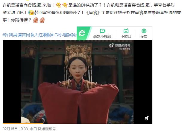 由许凯、吴谨言主演的电视剧《尚食》暂定2月22日芒果TV上线播出,本来是湖南卫视+芒果TV一起播出,现在改成了网播,具体改网播原因不明,不过卫视调整很正常,定档了都有可能临时撤档,播到一半的剧都有可能延播,更别说只是排播了。