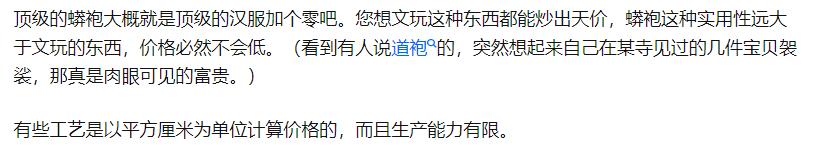 最近是郭德纲儿子郭麒麟的生日,郭德纲送了一件蟒袍,并且表示自己是专门去买来送给儿子的,可见一片纯纯父爱。这蟒袍一看就知道尊贵无匹,值不少钱,来看看德云社一件蟒袍多少钱,其实之前烧饼送郭德纲蟒袍的时候,大家也是观瞻了好长时间,看双方表现的都很开心满足的样子就知道那件蟒袍一定价值不菲,只是大家也很疑惑郭德纲要那么多蟒袍干什么用? 德云社一件蟒袍多少钱, 德云社一件蟒袍至少是六位数的价钱,大十几万那是有的,有说烧饼当年送郭德纲的蟒袍就88万多,而岳云鹏也送过不少蟒袍给郭德纲,算起来应该都是价值不菲的,其实单说蟒袍自然是有贵有便宜的,少则几千几百,多则几万十几万上百万上千万的都有,而郭德纲爱蟒袍这是众人周知的,时常在节目采访听人提及郭德纲对蟒袍的喜爱,所以他的徒弟们也以给郭德纲送蟒袍为荣。 然而要送给郭德纲的蟒袍,那自然不可能是几千几百几万的,至少是要上几十万才能获得郭德纲的青睐,而郭德纲徒弟们这一众相声演员一年的收入也是不菲的,像是烧饼和岳云鹏等等,稍微攒一攒也是可以买上一件送给师傅的。看起来郭德纲对于自己的儿子那是并不太奢华的,这次送儿子的蟒袍也就价值十几万,而他自己收藏有不少的蟒袍,最贵的据说有上千万。 郭德纲要蟒袍干什么用? 郭德纲喜欢蟒袍,要蟒袍自然是穿在身上,外加收藏欣赏。我们也时常能在很多德云社内部的晒图中见到郭德纲身穿蟒袍,看上去非常威风。而拥有这么多的蟒袍那就是收藏爱好了,喜欢收藏的人总是会收藏自己喜欢的各种各样的物件,有人喜欢古董字画,有人喜欢蟒袍华服,这就是郭德纲的喜好。