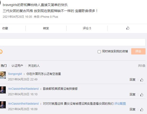 ![]() BraveGirls成员包括金玟莹,1990年9月12日出生于韩国京畿道城南市;南侑廷,1991年5月2日出生于韩国首尔特别市;洪恩智,1992年7月19日出生于韩国首尔特别市松坡区蚕室洞;李裕那,1993年4月6日出生于韩国首尔特别市。 此外,Brave Girls,是Brave Entertainment于2011年推出的韩国女子演唱组合,根据韩国的年代划分办法来看,他们属于三代团(此处的三代[2010 到2013]划分依据参考国内主流说法)。 已经10年的老团了,突然火起来,总结起来有几个点:中毒的hook区间、霸气的rap,不干瘦而健康匀称的好身材,这一切让他们再次变的吃香了! ![]() |