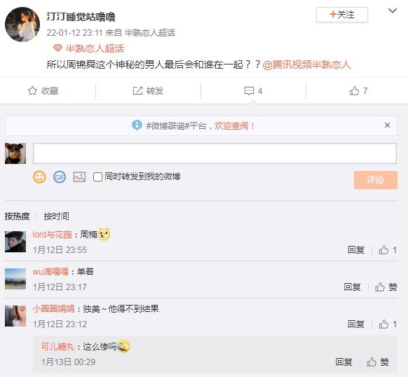 周锦舜被称为《半熟恋人》节目上最大的赢家,他在半熟小屋里遇到过自己喜欢的人,努力追求过也表白过,虽然最后没有happy ending 但却赢得了小屋里所有人的喜欢 不仅收获了来自罗拉“祝君好”的真诚祝福,还赢得了半熟观察员谢楠 薛兆丰 王菊 “成熟”、“执着、坦诚、有分寸感”、“清醒”的超高评价。
