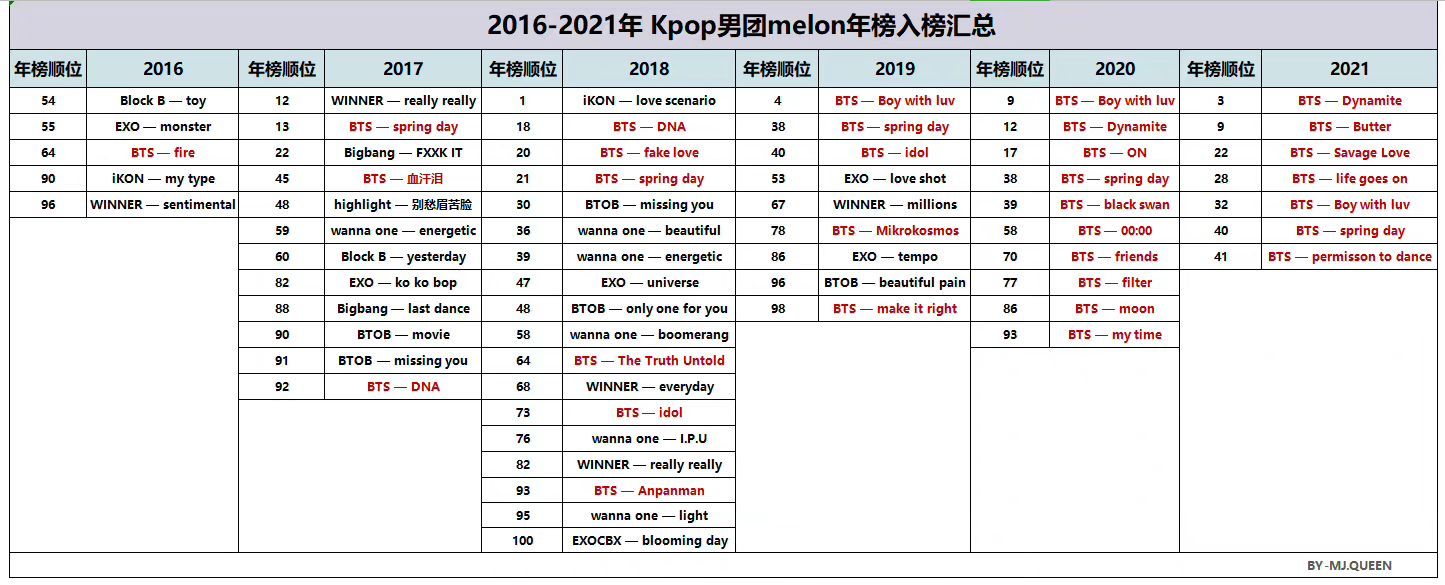 看了下这几年melon年榜,音源成绩好的男团很多都比较瘸腿,本土音源口碑有,但是本土死忠不够,或者就是防弹大棒那样的大势团,或者音源口碑比较好的老团。