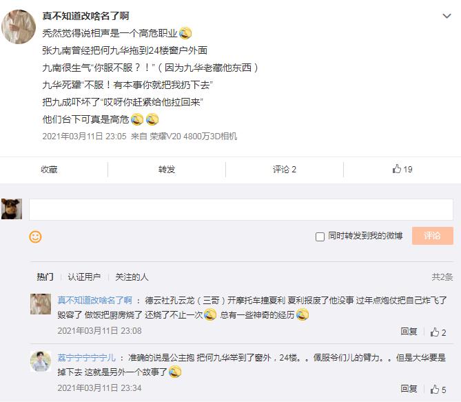 所以总结起来就是:张九南本名张剑宇,他前妻姓裴,出轨对象叫何建,是张九南的发小。不管这对前夫妻谁出轨谁家暴,整件事和德云社演员何九华本名叫何健的这个人,没有半毛钱关系。 ![]() 其实何九华是绝对不会做对不起张九南的事,因为两个人是“24楼的过命情谊”,传说,当年张九南公主抱把何九华举到了窗外,24楼。 ![]() |