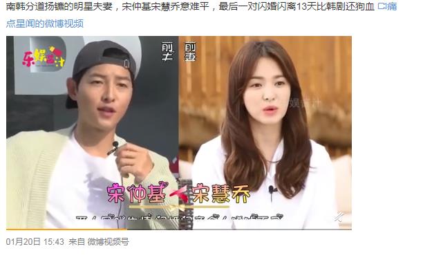 宋仲基、宋慧乔,因《太阳的后裔》结缘,2017年结婚,2019年宣布离婚。恢复单身后,宋慧乔并没有陷入不能自拔的悲伤情绪之中,看来已经完全治愈。两人曾经是亚洲著名的荧屏CP,离婚也是令很多人失望,两人对离婚的原因宋慧乔认为是两人没有磨合沟通好,宋仲基认为自己很受伤,事情已经过去很久,两人各自安好。后来也有媒体爆料认为是宋慧乔不想生孩子,导致两人关系闹僵,其实宋慧乔也不小了,事业心很强,因为韩国竞争很激烈,不小心就会被淘汰,所以无法决定为宋仲基生孩子。不过两人离婚后,感觉也没有什么好戏出演,两人婚后主演的作品收视率和口碑都差强人意,这件事对于两人并不是好事。