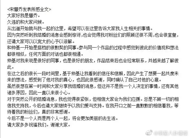 看来,两个人离婚的真正原因就是因为一开始没沟通好要孩子的问题,后来宋慧乔专注事业不想要孩子,对此宋仲基无法接受(还有个传言是出轨,这个信息可信度不高)。 ![]() 据说,当年宋仲基追宋慧乔是下了大功夫的,还曾经被多次拒绝过,后来参演《太阳的后裔》后,宋慧乔觉得彼此的价值观和想法很相似,任何方面的对话也都很相同(参考下图),所以最终决定在一起了。纵观影视圈,因戏结缘,并最终走到一起的荧幕CP真不少,《太阳的后裔》宋仲基宋慧乔,《知否知否应是绿肥红瘦》赵丽颖冯绍峰,《我只喜欢你》吴倩张雨剑,只是大多数来看,都是BE的结果,这着实令人感到惋惜。 ![]() |
