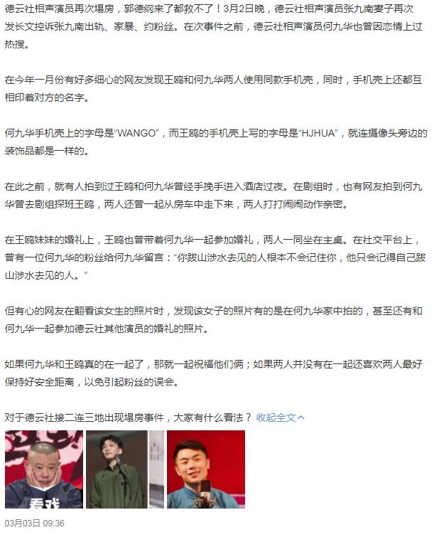 开年以来德云社可以说是风波不断,先是张九南被妻子锤出轨家暴,后有何九华传出恋情,最近郭麒麟有多次被拍到和不同女子同框,这一连串的传闻可以说让德云社受到了很多质疑,其中最让小编震惊的,就是何九华和王鸥的绯闻,因为在小编的印象中,他们好像是两个世界的人。 其实早在年前,就有狗仔拍到过王鸥和一名男子同款的画面,只是当时有猜测是何九华,不过大多数人都相信,后来又被拍到王鸥带着何九华去参加了她妹妹的婚礼,两人的手机壳上有彼此的名字,因此这才让网友确定两人的关系,不过至今为止,他们对于这段恋情都没有回应过。 可能很多人认识王鸥,都是从《琅琊榜》开始的,其实在这之前,王鸥就已经拍过很多戏了。王鸥出生于广西南宁市,如今已经39岁,父母在她三岁时离婚,后来王鸥就被寄养在邻居家中,因此王鸥的性格很独立,很早就开始赚生活养活自己,其实王鸥一开始是学民间舞的,后来机缘巧合做了模特,2005年正式进入影视圈,做了一名演员。 何九华女朋友王鸥资料 其实很多人对王鸥的印象,是她和刘恺威的夜光剧本事件,所以这次她和何九华传出绯闻,有人祝福,有人反对,有人则恶意中伤,和王鸥比起来,何九华要简单的多,网传何九华是个富二代,原名何健,北京本地人,他父母都是生意人,具体做什么的就不知道了,据说他家里条件非常不错。