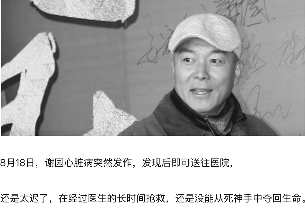 不知道家人们有没有听说过“喜剧三剑客”,他们分别是葛优、梁天和谢园,谢园和前两位比起来,可能名气要小一些,这可能和他平时很低调有关,估计很多人认识谢园,都是从《我爱我家》开始的,他饰演的宝财哥让人印象深刻。 但其实在《我爱我家》之前,谢园就拍过很多部作品了,而且还获得了金鸡奖最佳男主,飞天奖和金鹰奖最佳男配,可以说是奖项和作品傍身的实力派演员,谢园和葛优、梁天的感情很好,三人也一起合作了不少作品,近些年谢园出演的作品都是一些配角,但他一直在坚持拍戏,最后一部作品,就是《假日暖洋洋》,那么谢园拍完了这部剧吗? 在小编已知的信息中,《假日暖洋洋》剧组应该是在五月份开机,七月中下旬杀青的,而谢园去世的时间是八月份,所以他应该是在《假日暖洋洋》拍完后,没过多久就去世了,在《假日暖洋洋》中,谢园饰演的是陈临春,看上去精神奕奕,没想到会突然传出噩耗。那么谢园是怎么去世的? 谢园有过两段婚姻,但是一直没有孩子,所以直到去世,谢园和妻子也无儿无女,在20年8月18日,61岁的谢园突发心脏病,抢救无效后死亡,娱乐圈的好友们纷纷发文悼念,葛优和梁天也在微博缅怀这位好友,按照谢园的遗愿,他去世后不设灵堂、不举行遗体告别仪式。最可怜的可能是他的妻子邱悦,希望她能早日走出伤痛吧。