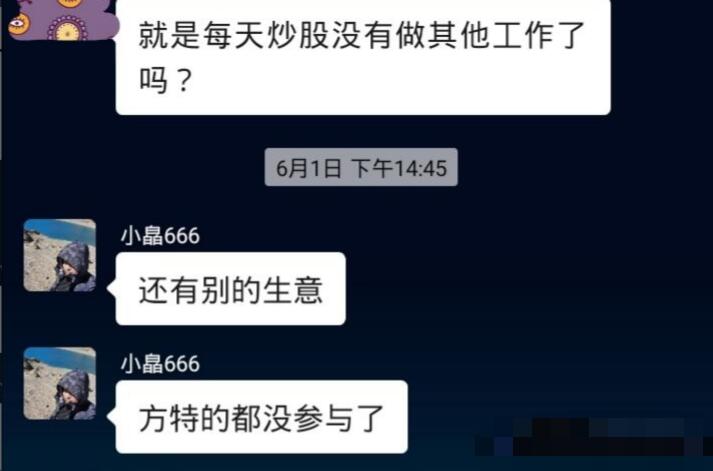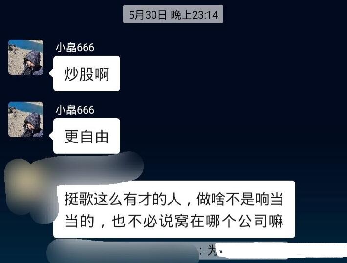 据白挺粉丝群的群主透露,白挺并不是被开除的,而是他主动辞职的,原因是“有了孩子”,现在的他靠炒股做生意赚钱,所以就自然不再靠音乐赚钱了,作为一个有家庭有孩子的男人,他现在更加想要带给家人更高的收入和更好的生活,弹吉唱歌只能作为他业余时间去做的事了。