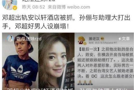 之所以被爆出这样的消息,主要还是因为邓超经常被爆出一些的“花边新闻”,其中在圈内最为之盛传的应该就是安以轩在酒店被孙俪毒打。据传闻:2008年邓超和安以轩在酒店被孙俪毒打合作拍摄《倚天屠龙记》,两人不仅在拍戏时相当默契,戏外也相处的十分愉快。因此有传言称两人的关系正在朝着不可控制的方向发展。随着舆论的方向,这事儿让孙俪知道了,于是孙俪就直接搞了个突然袭击,名义上是去探班邓超,其实是想要一探究竟。然而好巧不巧的是,孙俪刚赶到天上,便亲眼撞破邓超和安以轩同在一个酒店房间里,傻妹一度也是十分尴尬。看到这孙俪非常生气,直接带着助理就把安以轩毒打了一顿。之后邓超为了避免自己的名声受损害,便花了8000万买下照片,这才将这起事情压了下去,不得不说这件事被传的真是有鼻子有眼,之后邓超还和江一燕、古力娜扎等女星都传出过花边新闻,但这么多年过去了,娘娘和邓超感情依旧,还给他生了2个孩子,可见当时这些新闻的真伪了。