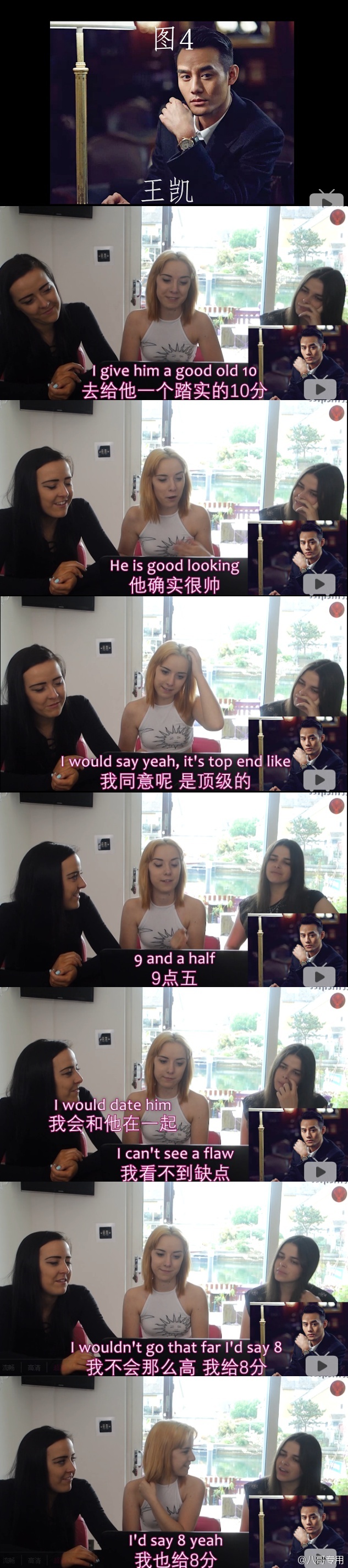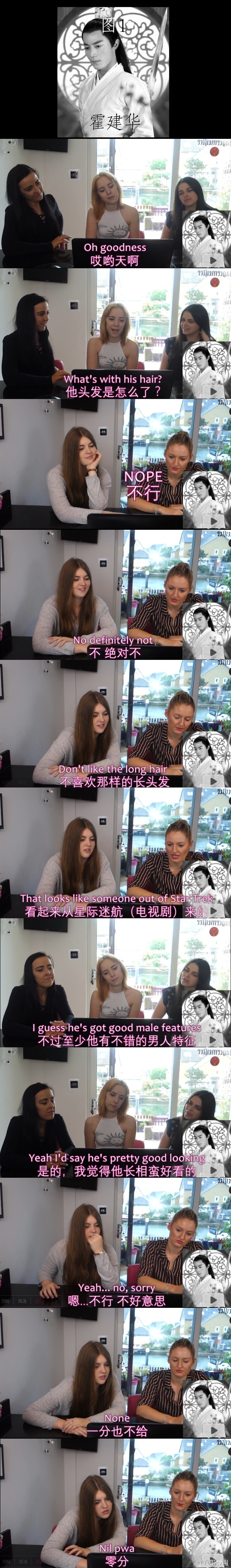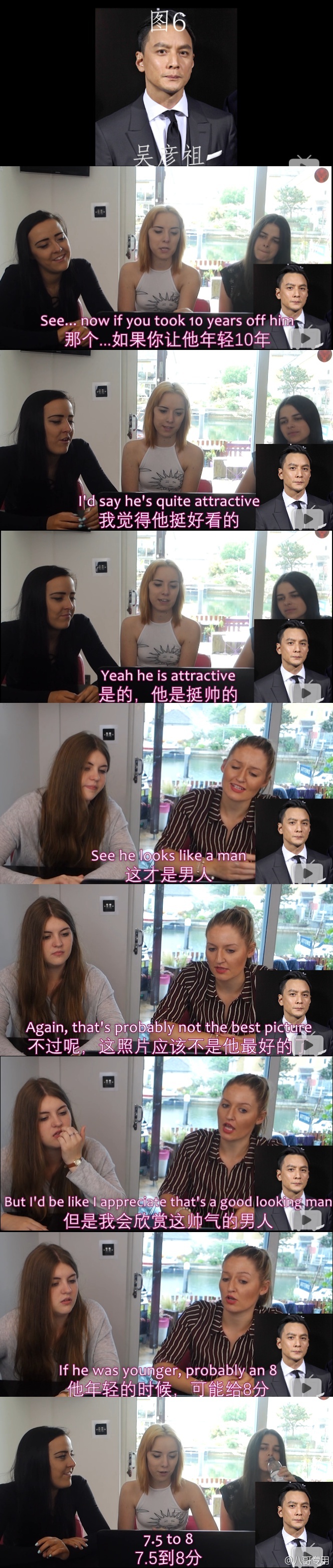 外国妹子神评价中国男星: 1号选手是老干部霍建华……你们知道他得了多少分么? O分! 完全是吃了造型的亏…… ![]() 歪果仁不懂古装啊亲! 给老干部换一张分数肯定蹭蹭往上长啊~ ![]() 原视频里妹纸还说,不懂他为什么长头发戴个皇冠…… 是拿我们老干部当drama queen 了么!? ![]() 那你们这个给解释一下? ![]() 二号选手,余文乐,多少中国女生心中的“张志明”,挂在胡子和发型上,差点负分滚粗…… ![]() 还有个妹纸说看起来像西班牙歌手恩里克·伊格莱西亚斯的稚嫩版…… ![]() 3号选手郭德纲老师,这个外国妹纸不懂,真的不怪她们,毕竟“内秀”这件事,还是很需要文化背景才能发现的~~不过郭老师的幽默、大方,凭借一张照片,已经感染了她们…… ![]() 4号选手,王凯,满分满分,还有没有多出来的都给他了! 王凯的脸棱角分明,这张照片从色调到造型,都有点他在《伪装者》里的明楼范儿,看来这款造型通吃海内外,一个大写的……端庄!姿势造型还很拿腔拿调(是不是手表广告啊?),获得外国妹纸一致好评,表示:顶级!看不到缺点! 此处中外网友握手言和~ ![]() 看来选照片真的很重要,要是这个造型也会被负分滚粗的吧? ![]() 在亚洲粉丝基础强大的小鲜肉怎么样呢? 5号选手鹿晗被用来验证~外国妹纸表示,他长得不丑,甚至好看,只是……确定不是个帅T?以及,跟小朋友谈恋爱是犯法的吧? ![]() 6号选手:吴彦祖! 这可是当年让我大学室友把10086都改名只为多意淫一下的男银啊……在外国妹纸眼中,他输给了岁月…… 不过,之前给了鹿晗3分的妹纸看了吴彦祖的照片说:“这才是真男人。如果他再年轻点,可以给8分。” 嗯,看别人家的男人总是这么挑剔~ ![]() 反正也不是你的! |