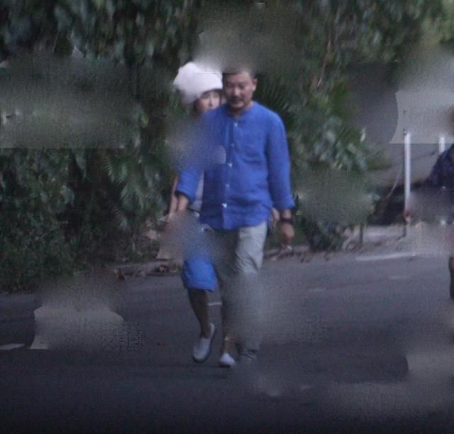 隔了5分钟,只见张柏芝同一个穿着蓝色衬衫、一边抽烟的胡须中年男离开游艇。玩了一日的张柏芝,心情似乎好愉快,同胡须男边走边聊天。二人刻意断后,远离大队,原本只需5分钟的路程,但张柏芝同胡须男足足走了10分钟,才到众人集合的停车场。