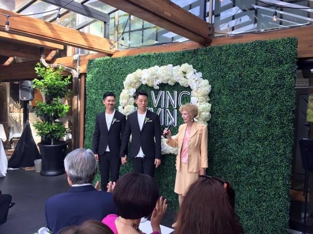 王志贤和男友Vinci照片: 国内无法注册同性恋结婚,于是跑到国外,关键是父母亲友都来了,真开明! ![]() 两人合影照片 ![]() 老外主持婚礼 ![]() 和亲友合影 ![]() 同性恋男人如何称呼另一半?