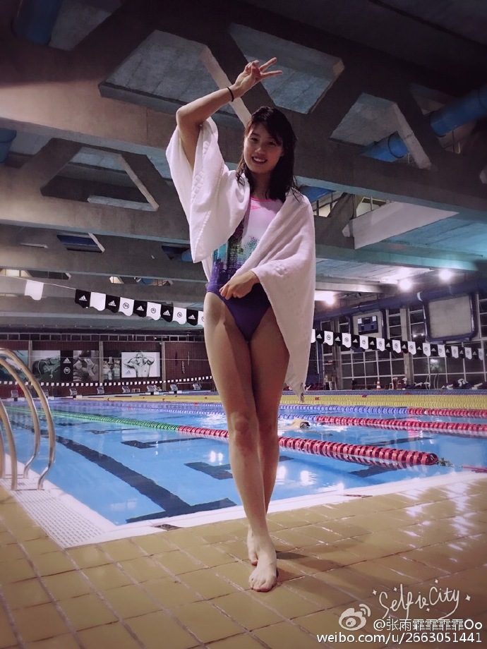 1.70米的身高,高高瘦瘦,白皙的皮肤,扎着一束高高的马尾辫,浓眉大眼……在张雨霏的母校民主路小学,记者见到了这位16岁的“泳坛新秀”。张雨霏的妈妈原本就是游泳运动员,爸爸是游泳教练,所以她从小对水有着深厚的感情,5岁进专业队训练,12岁入选江苏省体校,13岁进入江苏省游泳队,应该说在游泳方面很有天赋。
