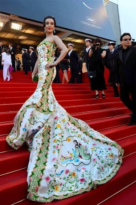 在第64届戛纳电影节的开幕日上,范爷穿了与前年的龙袍相呼应,由她的御用造型师卜柯文设计的“仙鹤装”,一出场便夺得无数闪光灯。 ![]() 这条裙子上有九只形态各异的鹤舞缭绕中,间缀梅兰竹菊四君子绣纹,所有刺绣均为手工,每条纹路都按照仙鹤羽毛的方向刺绣,由70个工人历时四个月完成。 ![]() 手上夸张的Cartier珠宝也华丽非常。 ![]() 第63届戛纳电影节上范爷以劳伦斯·许的“龙袍”一鸣惊人。 ![]() 搭配“龙袍”是一只动物纹手拿包。 ![]() 范冰冰充满中国特色的珠宝也令人印象深刻。 ![]() 这件Elie Saab白色礼服的最大看点就是两个巨大的蕾丝袖子,精美的图案华丽非常。 ![]() 优雅的背面布满了蕾丝。 ![]() 5月13日,电影《青少年警队》首映会上,范冰冰身穿Elie Saab 2009秋冬高级定制礼服现身,宛如40年代的好莱坞名伶。 ![]() 范爷拉起大片的蕾丝裙摆,真是梦幻到不行。 ![]() 与白色礼服搭配的是Cartier的高级珠宝,同样是华美的复古款。 ![]() 第63届戛纳电影节的闭幕式上范爷以这条水墨长裙做完美收尾。这样的单肩高腰极显腰细。 ![]() 妆容的颜色与礼服呼应。 ![]() 优雅的盘发在正式场合绝对不会失礼。 ![]() 这身Armani Privé虽然看着略显沉闷,但是当和一堆西方人站在一起时,你会发现范爷即使穿着洋装还是中国味十足,重点就是黑发和红唇。 ![]() 身上伯爵的珠宝同范爷身上的礼服一样保守稳重。 ![]() 5月13日,陈可辛导演的电影《武侠》首映上,范冰冰穿了Atelier Versace的粉色礼服。当中的渐变白色能营造纤瘦的视觉效果,而飘逸的荷叶下摆好似出水芙蓉。 ![]() 这件粉红色的Atelier Versace高级定制礼服比起之后那件紫色Versace的咄咄逼人,多了几份温婉气质。闪亮的手拿包和礼服珠宝完美呼应。 ![]() 第63届戛纳电影节的主竞赛单电影《日照重庆》记者会中,范冰冰穿了一身Valentino的粉色露肩纱裙。