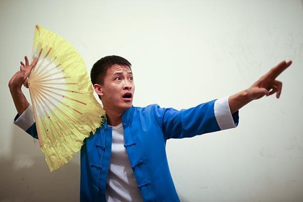 我看到一个踌姗的背影,颤巍巍地走下台阶,在空旷的停车场上自己转着圈,嘴里念念有词,不知道是在背马上要表演的台词,还是在祈祷什么,过了一会儿,他挤出一个笑容,说:走!咱们上场!”
