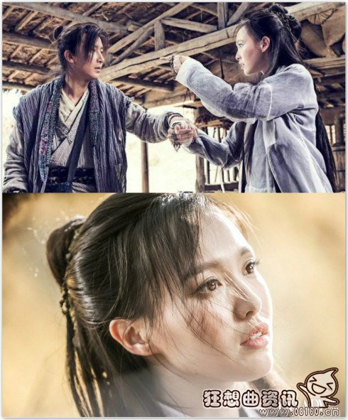 饰物的对比在两者之间尤为明显,不单单是数量,还有就是颜色的差别。朱茵版的紫霞仙子从造型来看更显飘逸与潇洒,浅色衣物衬得朱茵一派大侠风气,动作之间赶脚风流倜傥,而几缕碎发也让朱茵显得更加帅气机灵,配合着其要表达的灵动个性,可谓相得益彰。一个是白衣飘飘、干净利落,另一个则繁冗复杂、造型怪异,这比较结果自是不用说了。