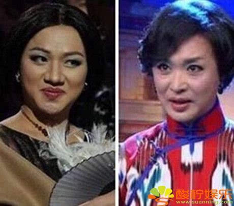 那么王祖蓝和金星究竟有多像呢?看两人认真看着某处,嘴角带着微笑的样子,简直是一模一样。两人的眼睛形状、脸型、微笑的角度,都几乎是一样的。如果说两人具体哪里像,应该就是感觉,因为看到一个人就会马上想到另一个。 当王祖蓝扮上女装的时候,简直就是本人金星。当王祖蓝模仿金星的造型、说话方式时,两人就是“双胞胎”了。 ![]()